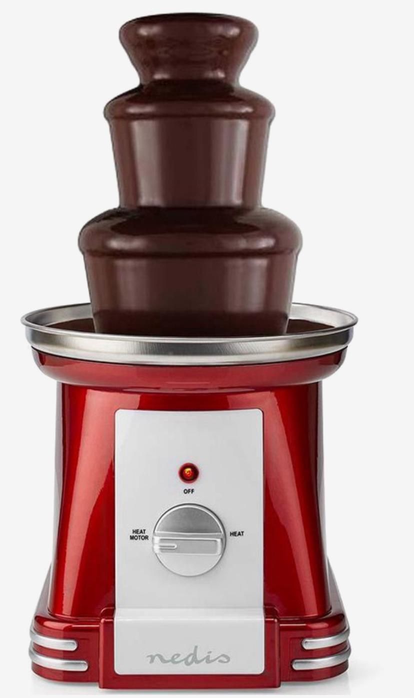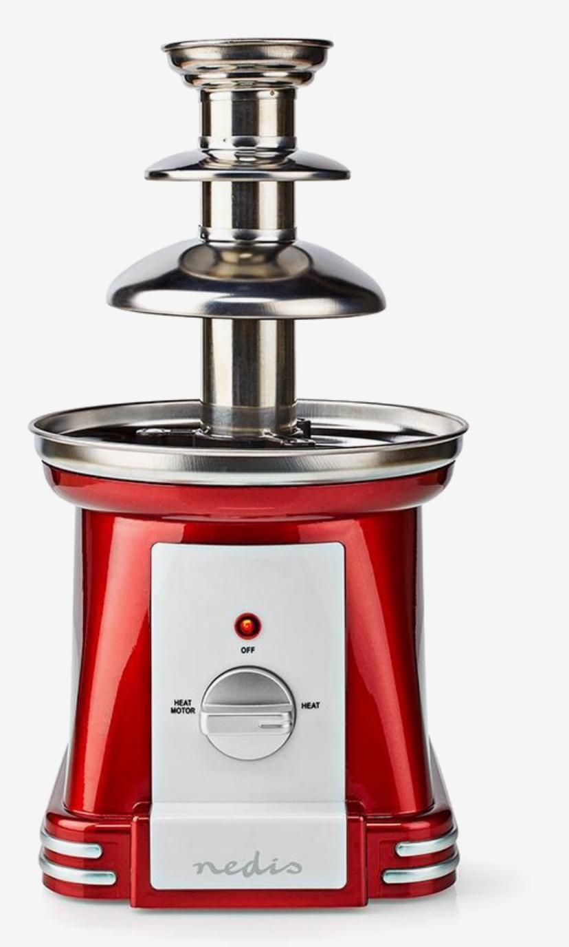 Deze nedis chocoladefontein in retrostijl is perfect voor elke chocoladeliefhebber, of je nu een feestje geeft, een zelfgemaakte high tea plant of je gasten verrast met een traktatie na het diner. De fontein pompt de chocolade omhoog zodat deze over de lagen van de fontein naar beneden stroomt